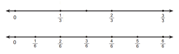 Buatlah garis bilangan pecahan, kemudian bandingkan pecahan berikut dengan memberi tanda < atau > !